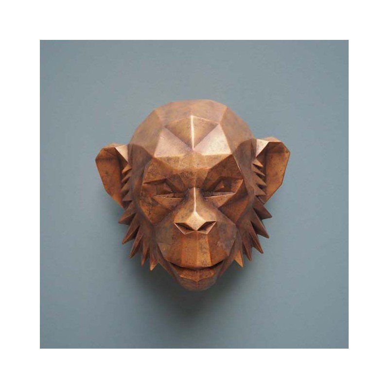 Trophée tête d'Orang-outan design doré effet patine